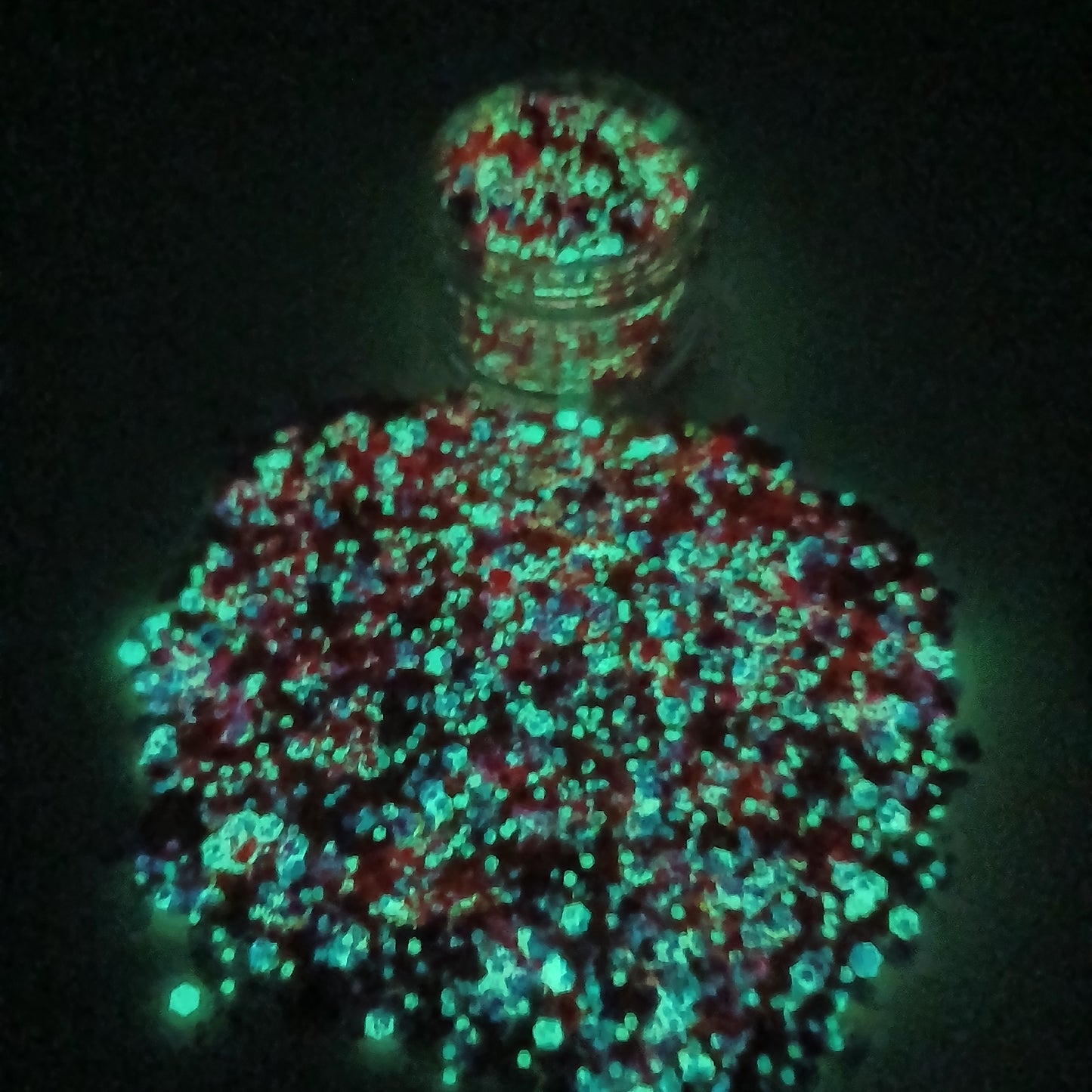 Please note: Actual glitter color may vary slightly due to monitor or lighting differences. Photos were captured in both natural and UV light to show glow effects.